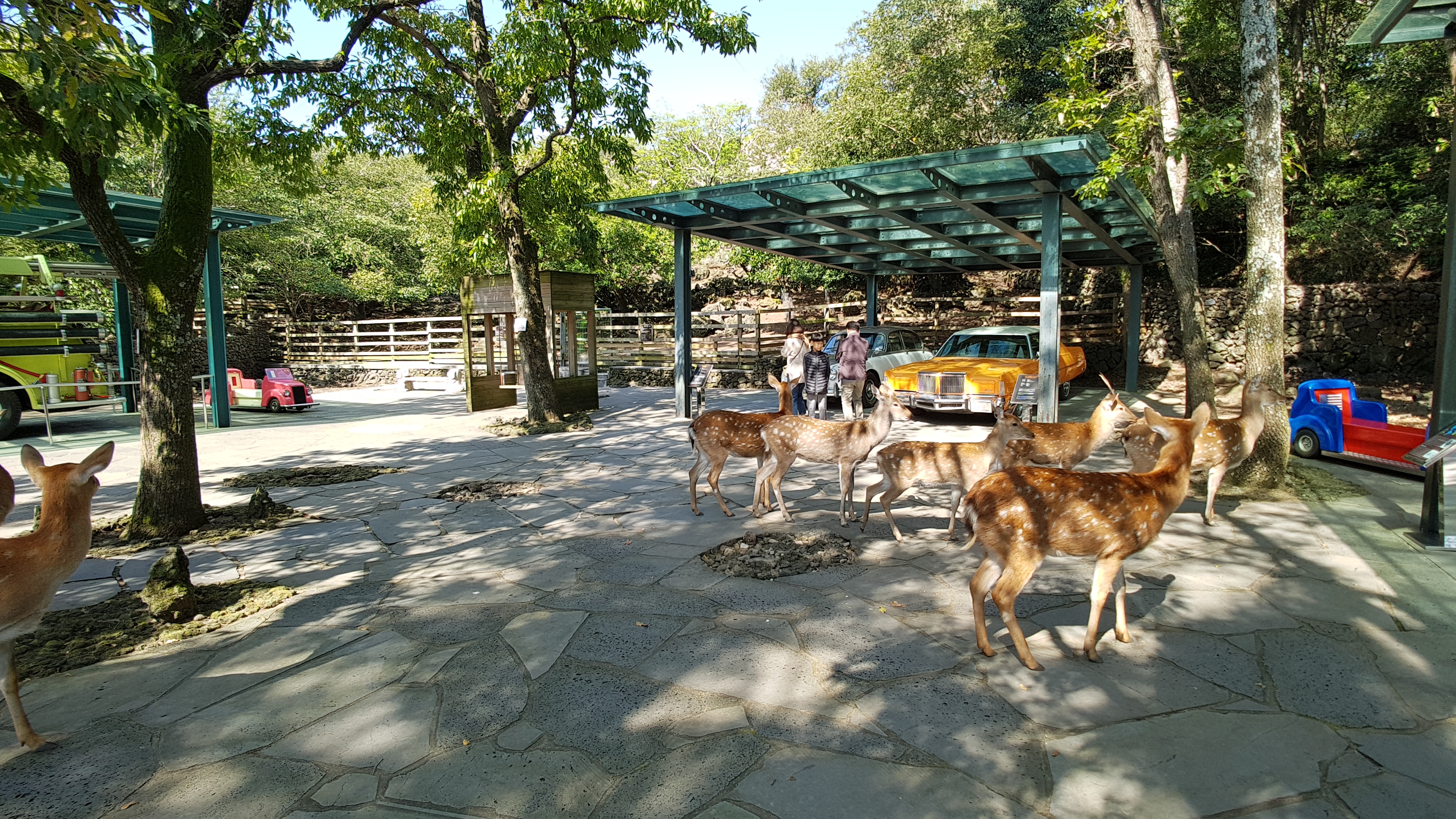 자동차뿐만 아니라, 입구 쪽에서부터 꽃사슴들이 풀어져 있어서 매점에서 먹이를 사서 먹이 주는 체험도 가능했습니다.