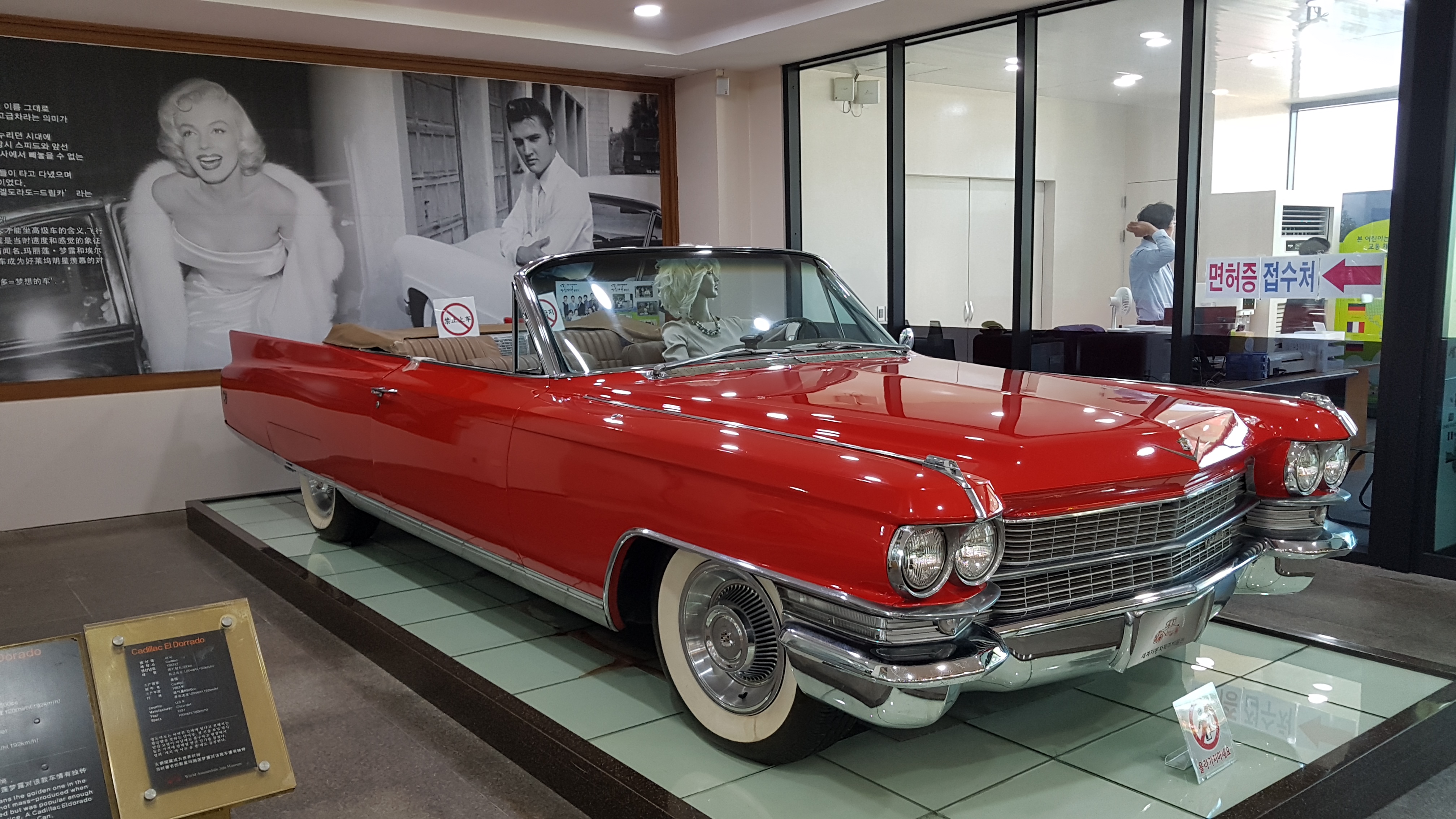 마릴린 먼로의 애마로 사랑받은 명차 캐딜락 엘도라도 도 전시되어 있습니다. 1959년에 처음 등장한 이 차는 마릴린 먼로뿐 아니라, 19 엘비스 프레슬리 등 유명 스타들의 애마로 사랑받았다고 합니다. 꽁무니에 화려한 테일핀을 달아 제트기 같은 인상을 풍깁니다.