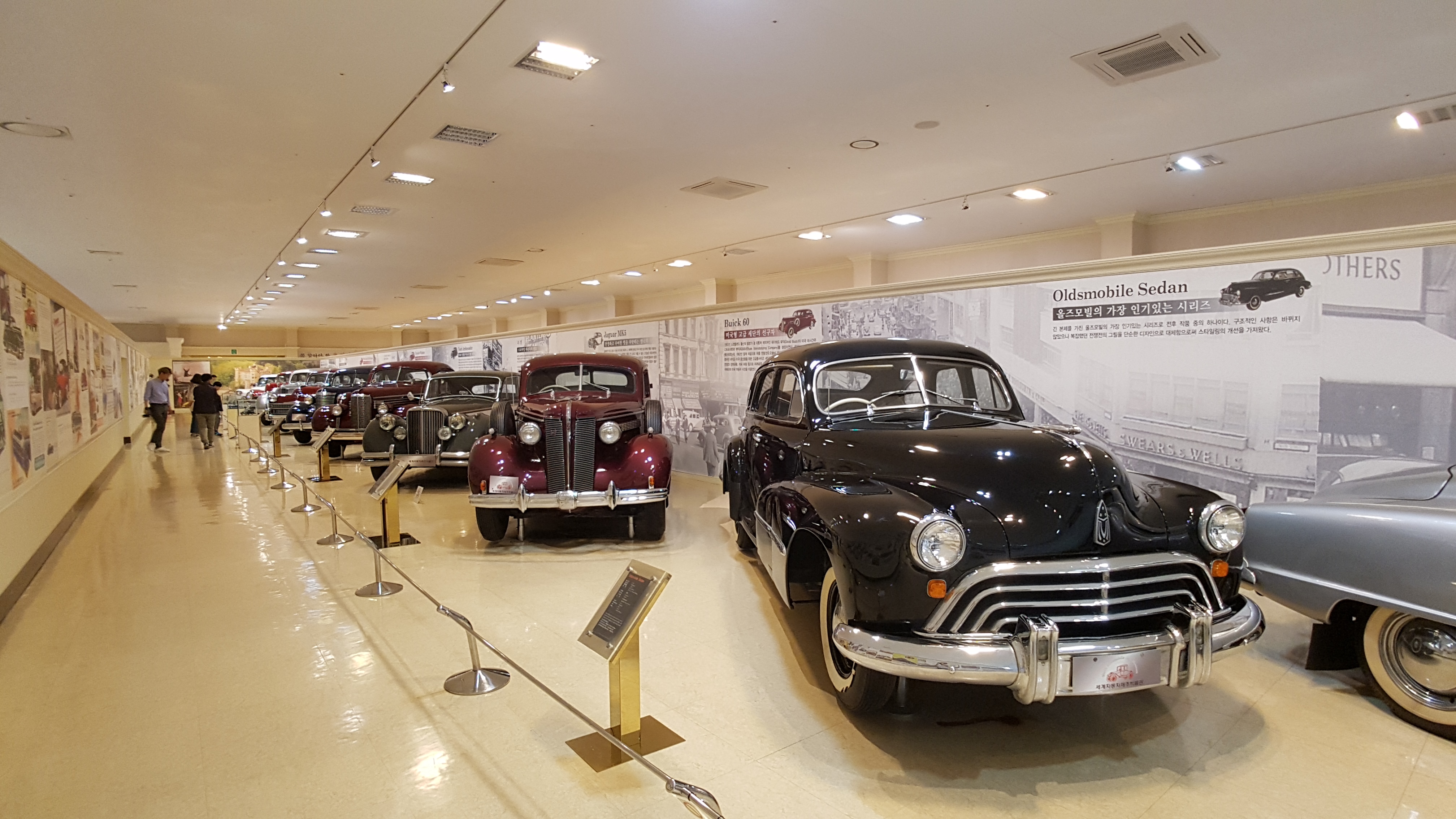 클래식한 다양한 자동차들이 전시되어 있습니다.