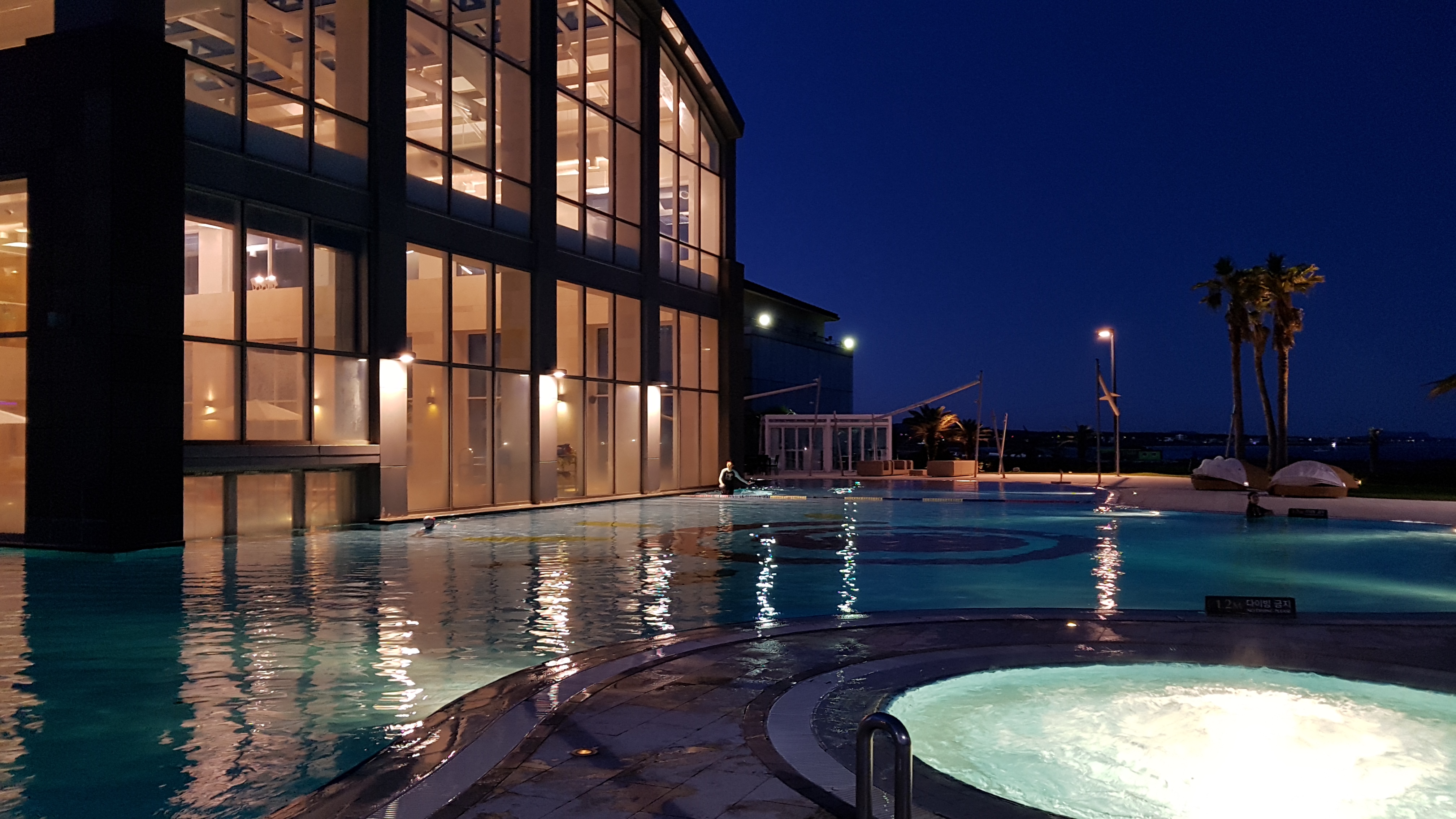 오후 6시쯤 되니 날이 조금씩 어둑어둑해지고 있습니다. 야간 야외수영을 위해 나왔는데 물이 따듯하고 사람도 없어서 수영하기 좋았습니다.